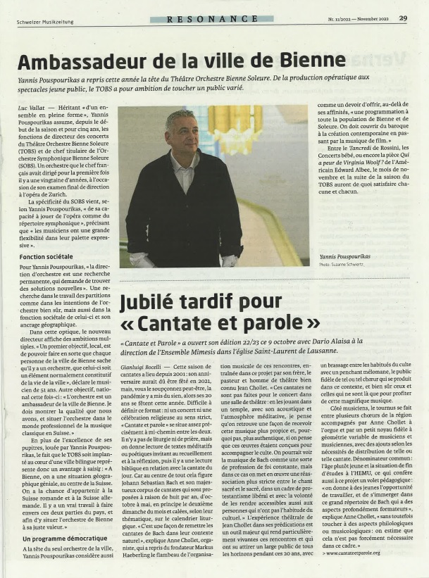 Ambassadeur de la ville de Bienne_November2022_Schweizer Musikzeitung
